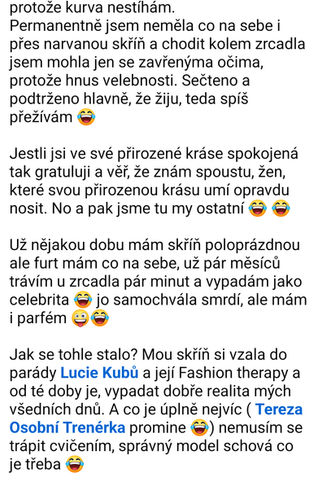 “Naprosto famózní Fashion Therapy s Lucií Kubů. Luci je fakt kouzelnice outfitů, doplňků a kombinace.”